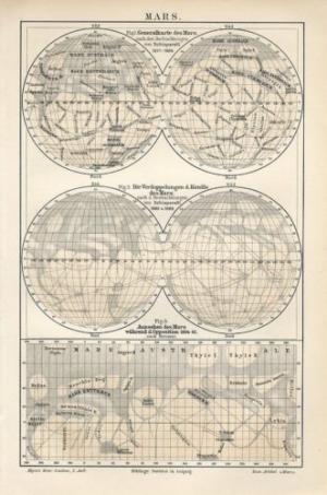 1895 MARS PLANET ASTRONOMY Antique Map     Completed    $0.99