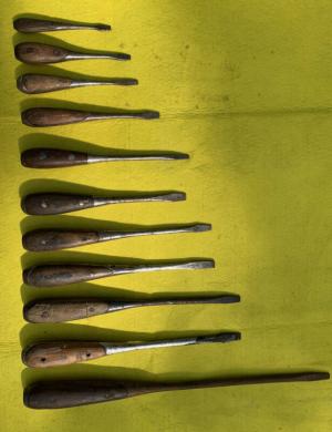 Lot Of 11 Vintage Wooden Flat Tip Screwdrivers     Completed    $65