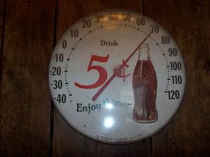 VINTAGE COCA-COLA 5 CENT DRINK WALL TEMP     Completed    $40
