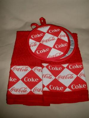 Coca Cola Coke kitchen towels and potholders     Completed    $27