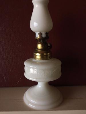 MINIATURE MILK GLASS OIL LAMP BANNER * IMPROVED     Completed    $12.99