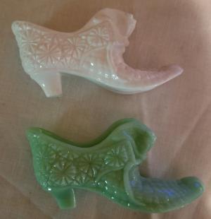 Vintage Fenton Milk Glass Boot-Lot of 2 White/Green     Completed    $12.99