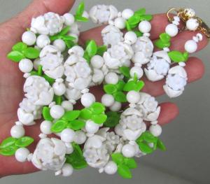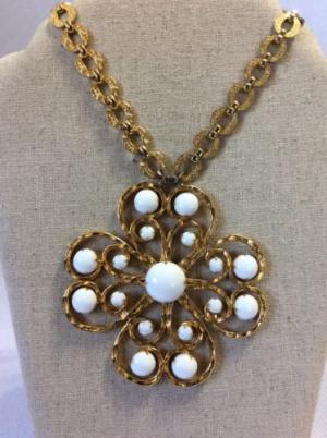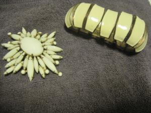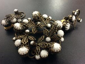 VINTAGE MILK GLASS FILIGREE BROOCH AND EARRINGS     Completed    $12.99