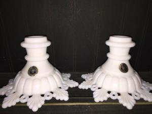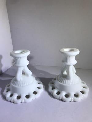 2-Fenton Vintage Ornate Candlesticks Milk Glass     Completed    $12.99