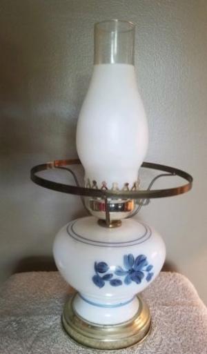 Small Vintage Painted Milk Glass Kerosene Oil Lamp     Completed    $12.99
