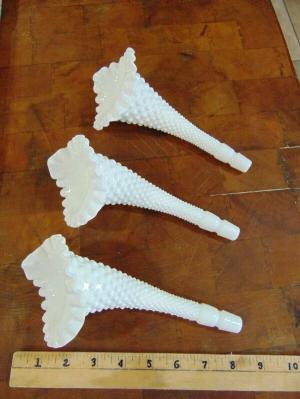 3 Fenton Milkglass Hobnail Epergne Horns     Completed    $12.99