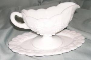 Milk Glass gravy boat, underplate, grape pattern     Completed    $12.95