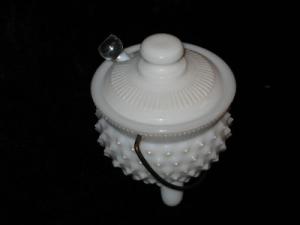 Fenton Milk Glass Hobnail Mustard Kettle with Spoon     Completed    $12.95