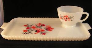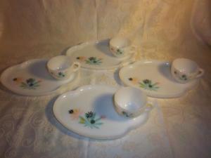 Set of 4 Vintage Milk Glass Snack Trays With Cups     Completed    $12.95
