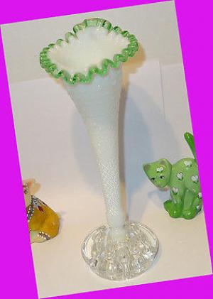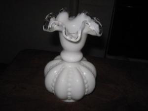 Fenton Milk Glass Silver Crest Beaded Melon Vase     Completed    $12.95