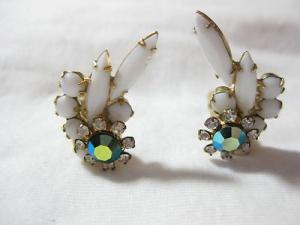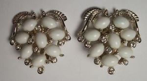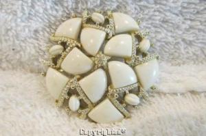Vintage Kramer White Milk Glass Round Brooch Signed     Completed    $12.95