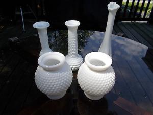Vintage Milk Glass Hobnail Vases, Lot of 5     Completed    $12.95