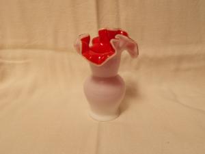 Fenton? Milk Glass and Red Cased Ruffled vase     Completed    $12.95