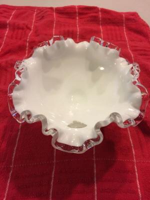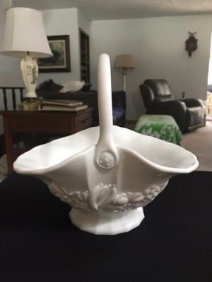 Vintage White Milk Glass Fruit bowl Fenton large     Completed    $12.95