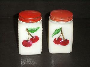 Milk Glass Roman Arch Pattern Red Cherry Shakers     Completed    $12.95