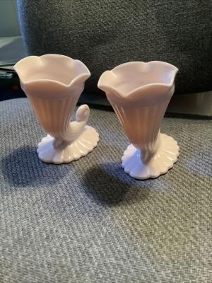 Vintage Pair Jeanette Pink Cornucopia Vases     Completed    $12.95