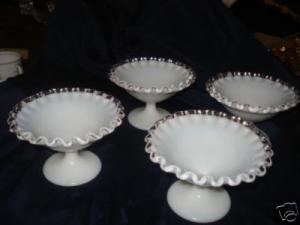 FENTON SILVERCREST SHERBET MILK GLASS SET 4     Completed    $12.7