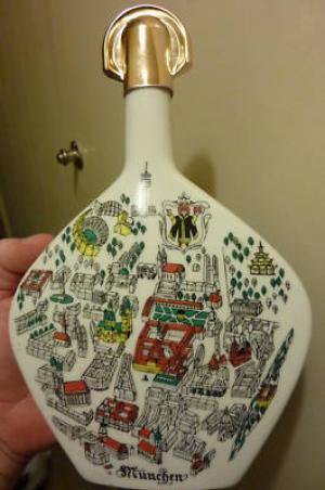 Retro German Liqueur Milk Glass Bottle, 60's Art     Completed    $12.62