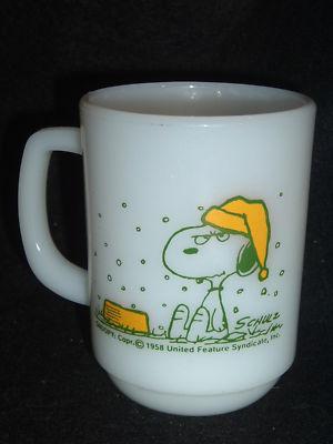 Snoopy Peanuts Fire King Coffee Mug Glass Milk     Completed    $12.6