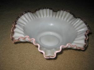 Vintage Fenton Pink Crest Milk Glass Bowl Epergne     Completed    $12.58