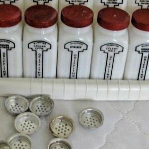 Vintage 8 Milk Glass Spice Jars with Rack     Completed    $12.6