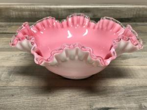 Fenton Pink Milk Glass Hobnail Ruffled Edged Bowl     Completed    $12.7