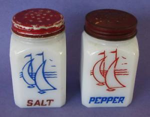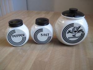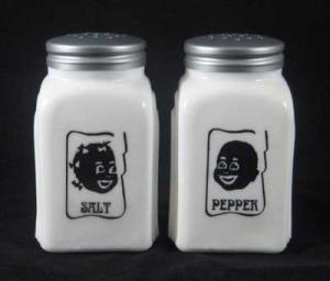 MILK GLASS BLACK AMERICANA SAMBO S & P SHAKERS     Completed    $12.5