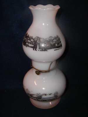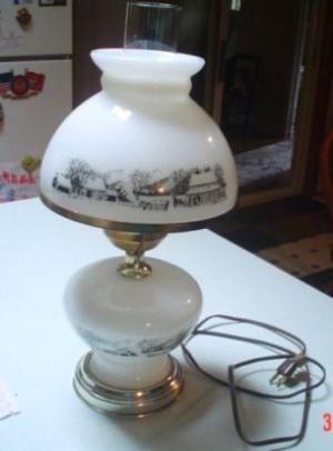 CURRIER & IVES GLASS OIL LAMP & SHADE MILK GLASS     Completed    $12.5