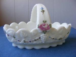 Milk glass basket with flowers     Completed    $12.5
