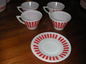 4 Hazel Atlas Milk Glass Candy Red Stripe Cups     Completed    $12.5