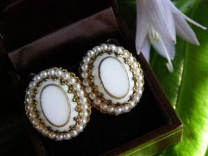 Vintage Miriam Haskell Milk Glass Signed Brooch     Completed    $12.5