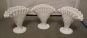 Fenton (3) Hobnail White Milk Glass Fan Vases     Completed    $12.5