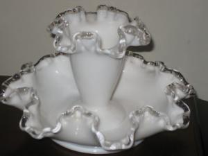 Fenton Silver Crest Milk Glass One Horn Epergne     Completed    $12.5