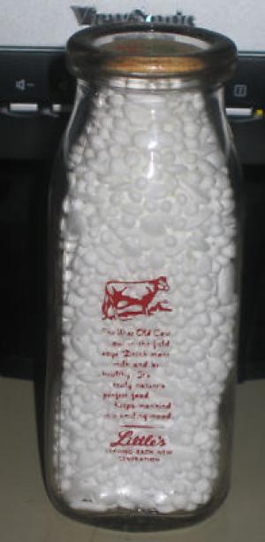 STUEBERS QUART RED PYRO CREAMTOP MILK BOTTLE     Completed    $12.5