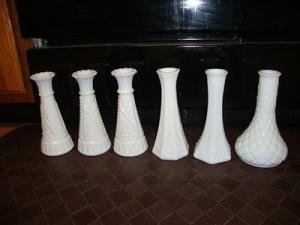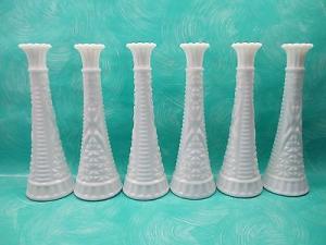 Milk Glass Bud Vase 9"~ Lot of 6 ~ Stars & Bars     Completed    $12.5