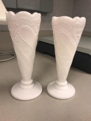 VINTAGE MILK GLASS VASES, MATCHED PAIR, FENTON?     Completed    $12.5