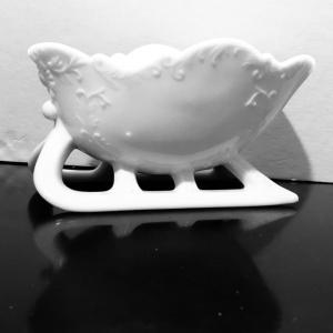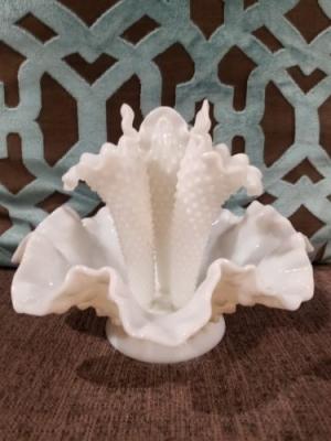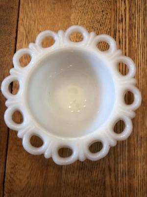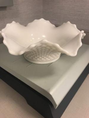 WHITE MILK GLASS WHISK BROOM DISH     Completed    $12.5