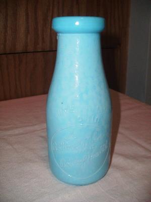 Blue Milk Glass Liberty Milk Bottle one pint     Completed    $12.5
