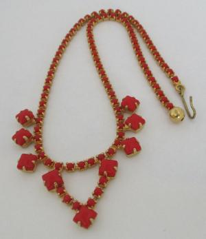 Vintage Cherry-Red Milk Glass Cabochon Necklace     Completed    $12.5