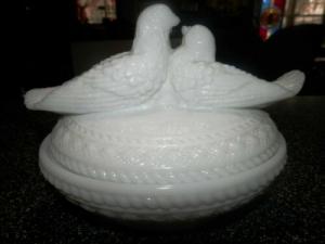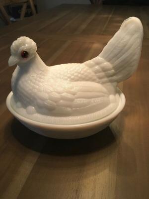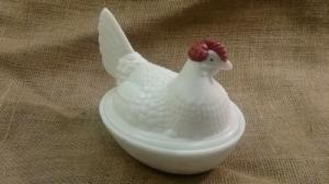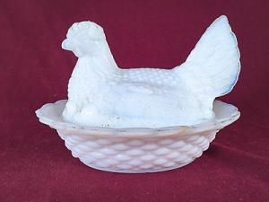 Vintage Milk Glass Hen Nest Covered Dish     Completed    $12.5