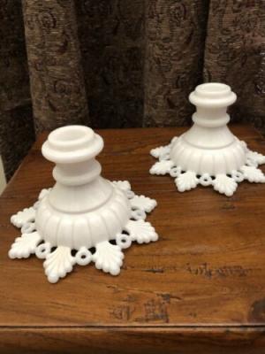 Vintage White Milk Glass Candle Holders x2     Completed    $12.5