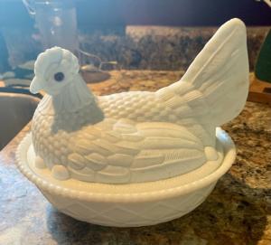 Vintage Milk Glass Chick Hatching Easter Egg Dish     Completed    $12.5