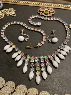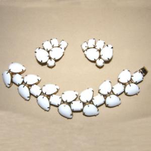 Vintage Bracelet & Earrings - Milk Glass Stones     Completed    $12.49