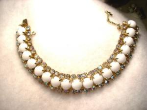 Vtg Cabachon MILK GLASS-AURORA BOREALIS BRACELET     Completed    $12.45