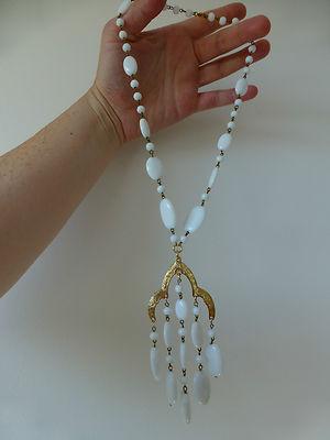 Vintage Milk Glass Bead Necklace 52"     Completed    $12.49