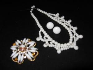 Vintage Milk Glass Brooch, Necklace and Earrings     Completed    $12.06