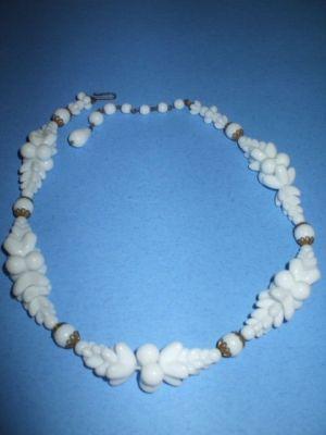 White Coral & Milk Glass Summer Necklace Vintage nr     Completed    $12.07