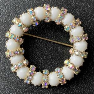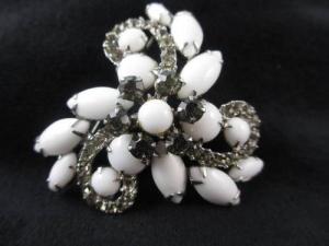 Vintage Milk Glass Rhinestone Brooch Pin AUSTRIA     Completed    $12.06