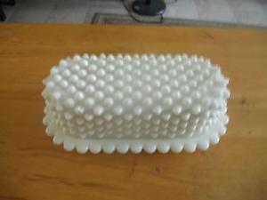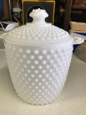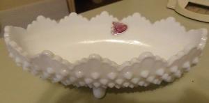 MILK GLASS HOBNAIL PRESSED GLASS BASKET     Completed    $12