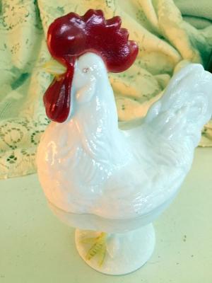 Westmoreland milk glass candy dish flowered     Completed    $12
